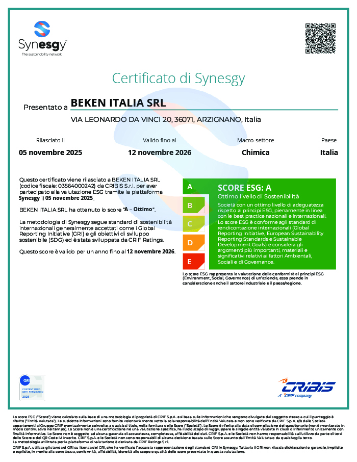 La BEKEN ITALIA S.r.l., giovane impresa nata nel 2009, inizia un cammino che la porta ad un progetto atto a sviluppare un processo ed una tecnologia avanzata, specializzata nella ricerca di prodotti con bassissimo impatto ambientale.