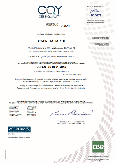BEKEN ITALIA SRL NELLE SEGUENTI UNITA' OPERATIVE HA ATTUATO E MANTIENE UN SISTEMA DI GESTIONE QUALITA’ CHE E’ CONFORME ALLA NORMA UNI EN ISO 9001:2015 PER LE SEGUENTI ATTIVITÀ: